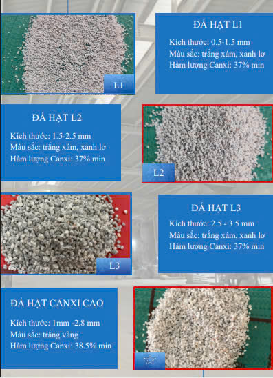 Chúng tôi chuyên cung cấp khoáng hạt canxi cacbonat (CaCO₃) được sản xuất từ đá vôi trắng tinh khiết, đạt tiêu chuẩn cho nhiều ngành thức ăn chăn nuôi, công nghiệp, xây dựng...