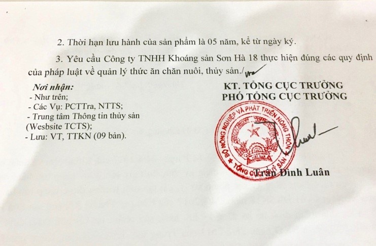 - Tháng 8/2017, sản phẩm bột đá Sơn Hà đã được Cục chăn nuôi cấp phép cho sử dụng trong ngành sản xuất thức ăn chăn nuôi gia súc, gia cầm theo mã số được công nhận là 247-8/17-CNVN-ĐT và 248-8/17-CNVN-ĐT.